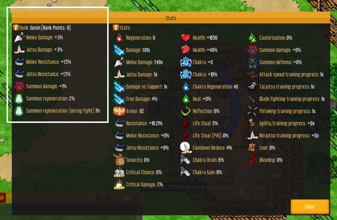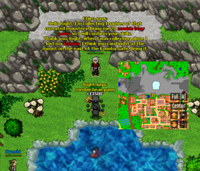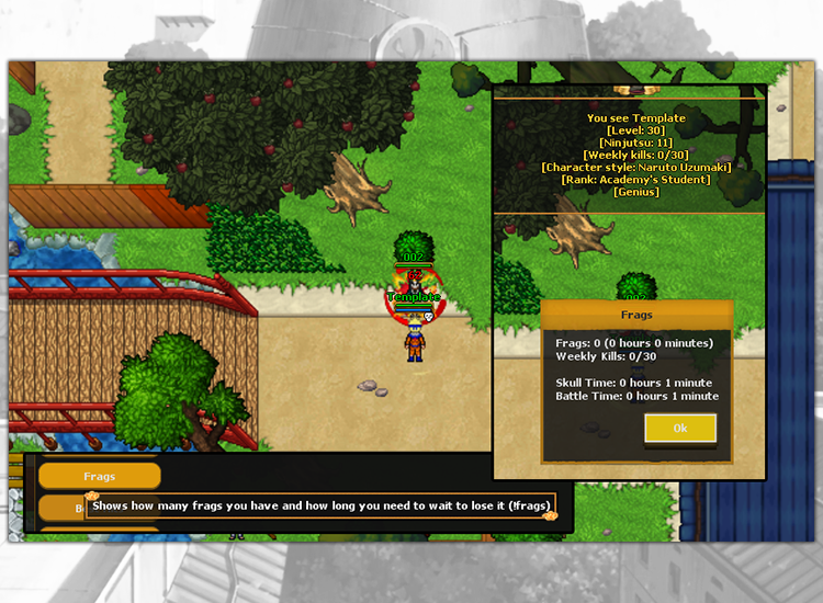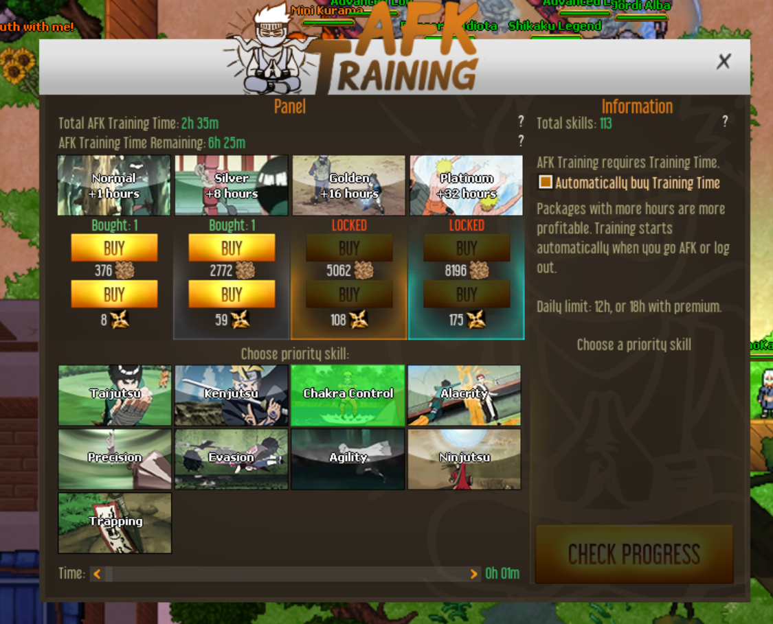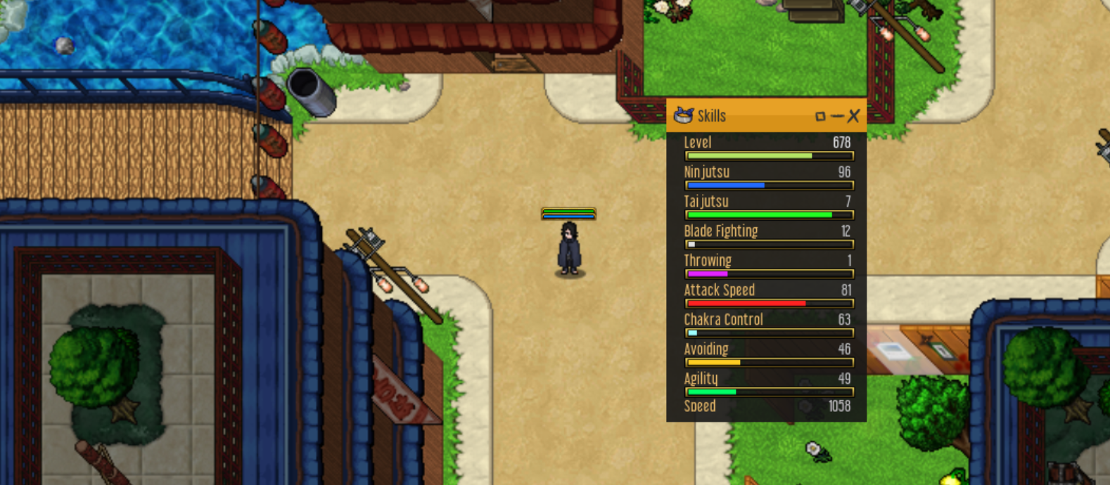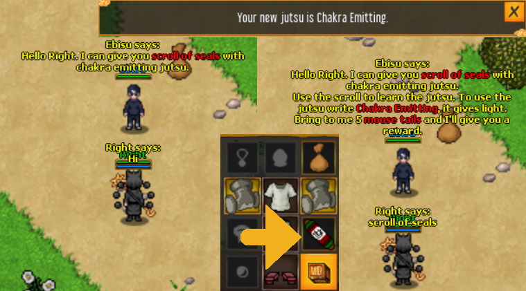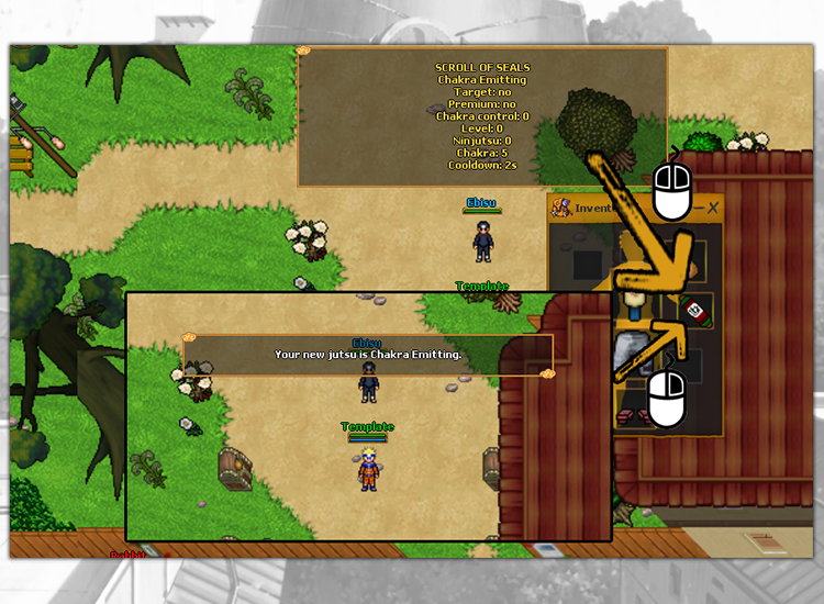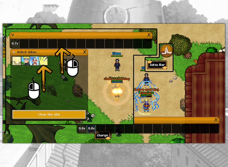 The Jutsu bar features auto-casting jutsu, items, messages, and more. This can help you in training, fighting monsters or players.