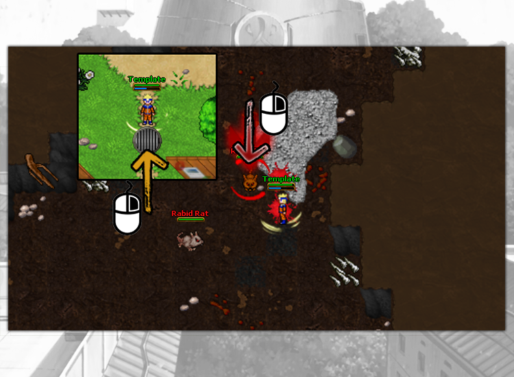 To gain experience, you mainly have to defeat monsters. To start an attack, simply right-click on an enemy or click on the name of the enemy in the Battle window. You can find this module in the Combat tab in the upper right panel. Another option is to press the "F" key on the keyboard or the Aim Target button in the Battle module. This option selects the opponents one by one from the list of the Battle window. When you see a red circle around an enemy or an enemy is highlighted in red, it means you are attacking them.