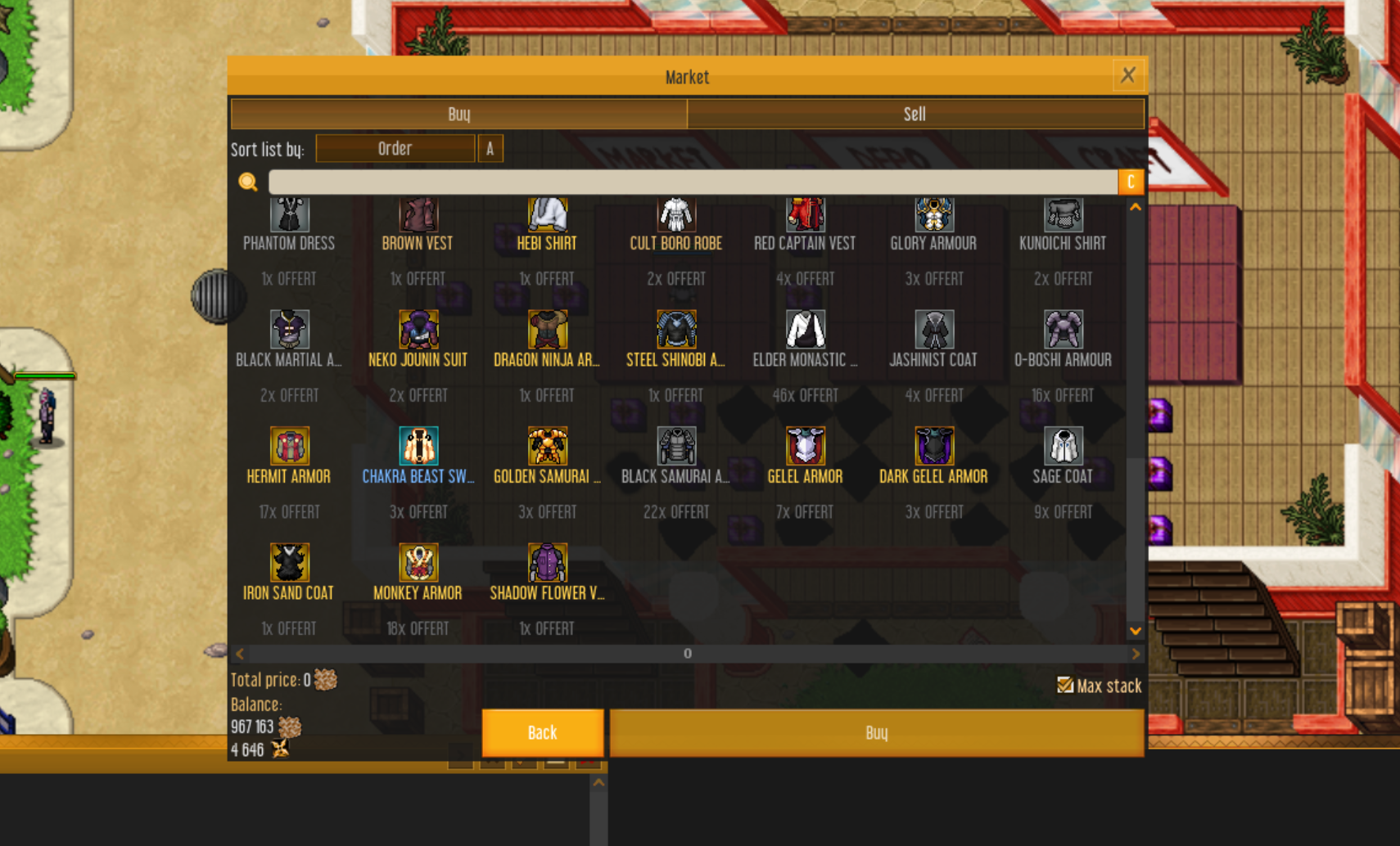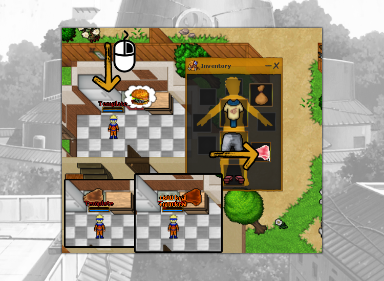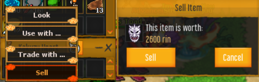 On Naruto Story, you can sell your items quickly. Simply select the Sell option from the item menu. To open the item menu, press CTRL + Right Mouse Button on it.