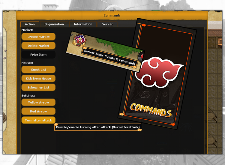 The commands allow you to use many functions that give you the world of Naruto Story, and the window with the commands is spread out, useful, because you do not have to remember all the commands. It is a simplified way to perform actions related to commands. The command window is located in the Game tab in the upper right panel.