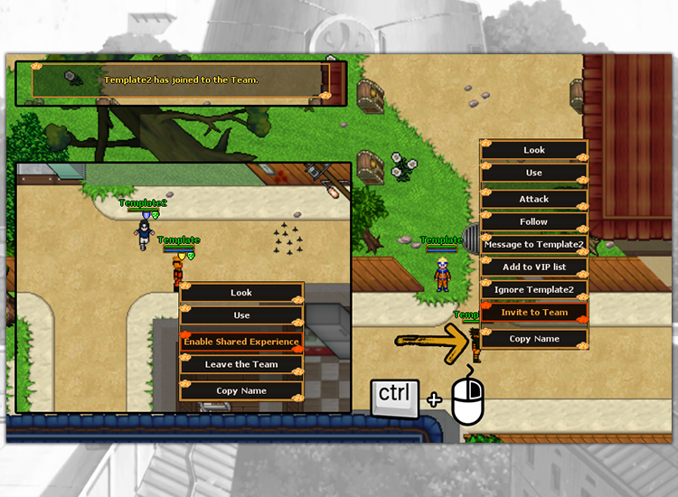 To create a party, hold the Ctrl key and right-click on the future party member and press "Invite to party". Another player can accept the invitation in the same way.