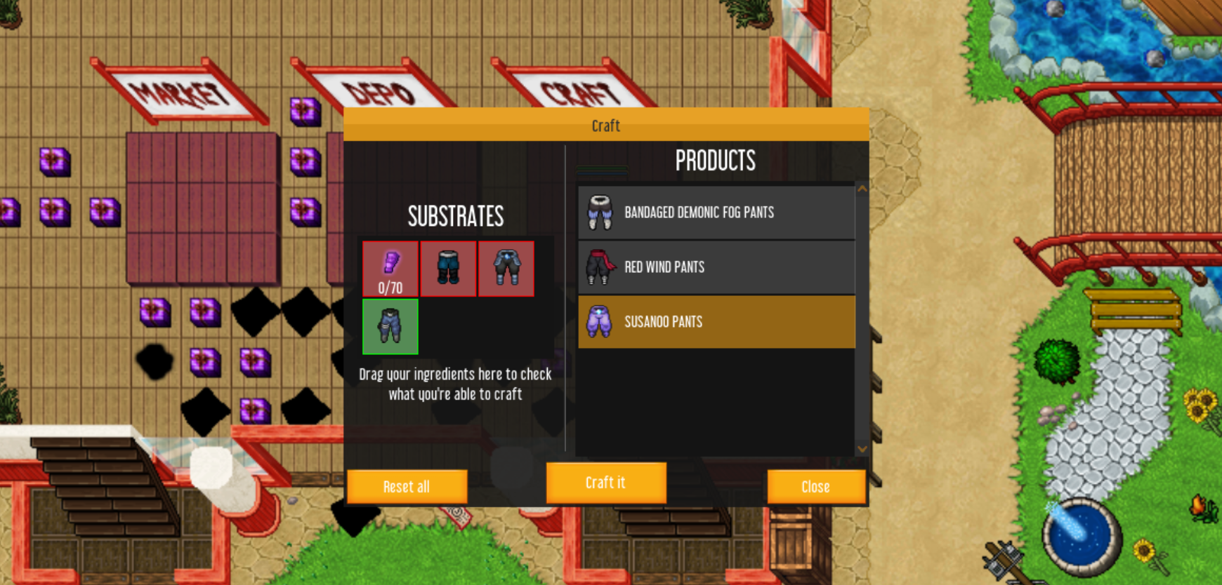 Depo is designed so that you can keep your items in order. There you will find tabs for specific item categories, as well as stash for stackable items.