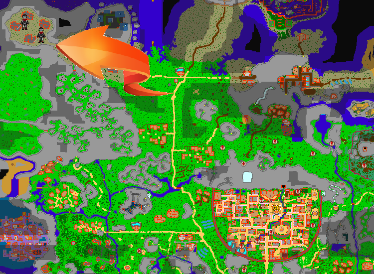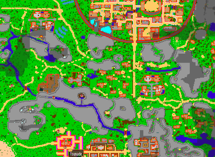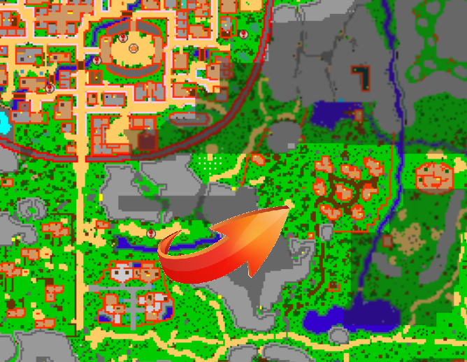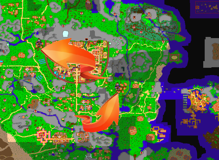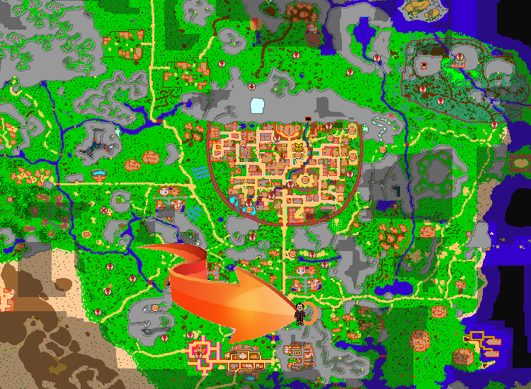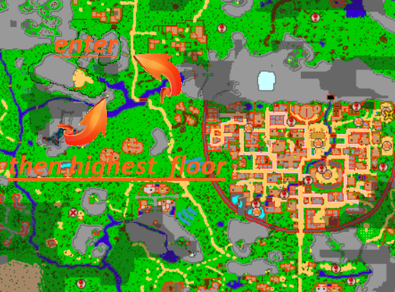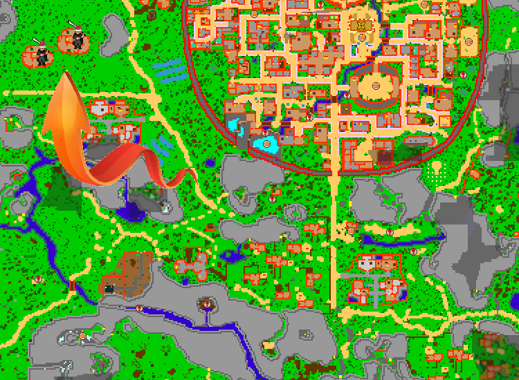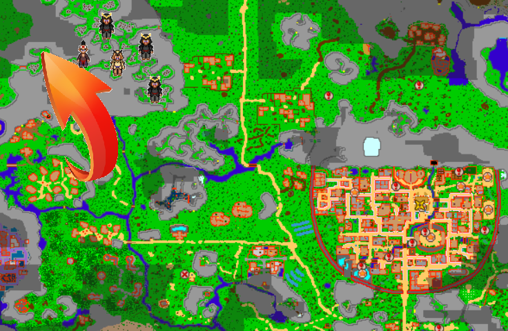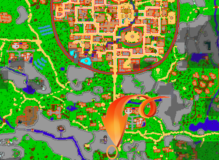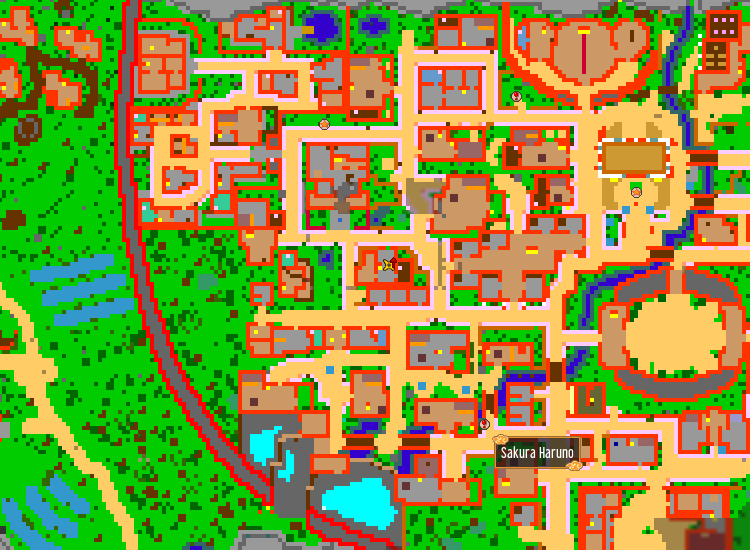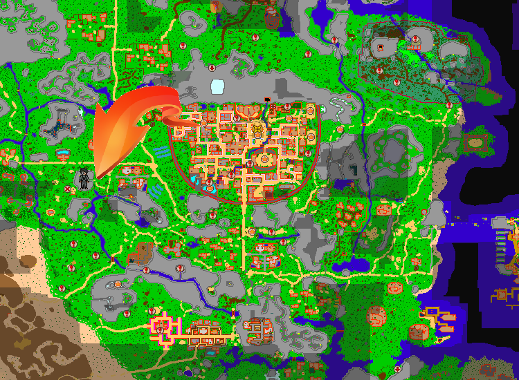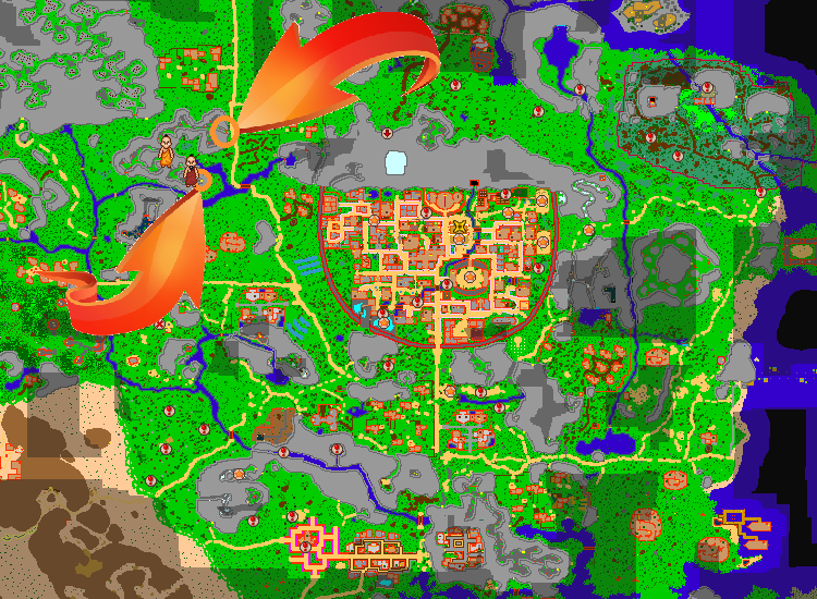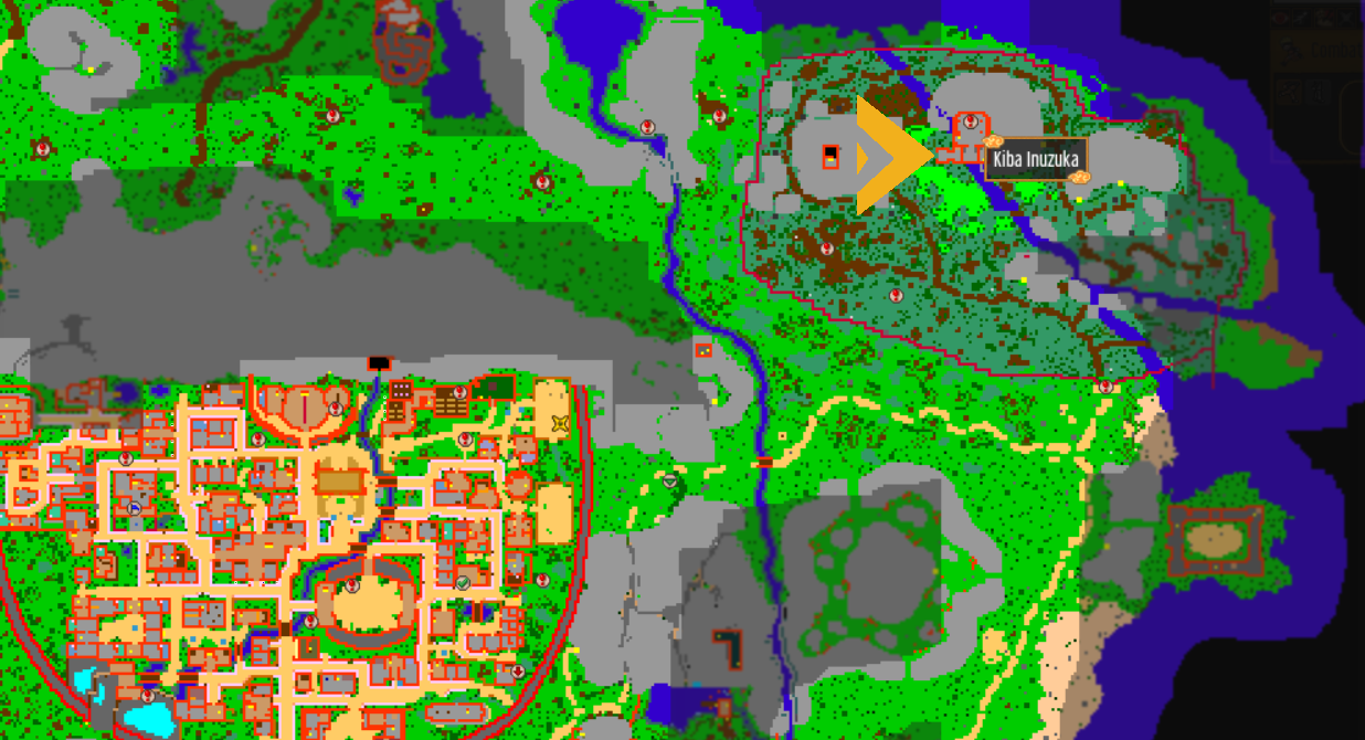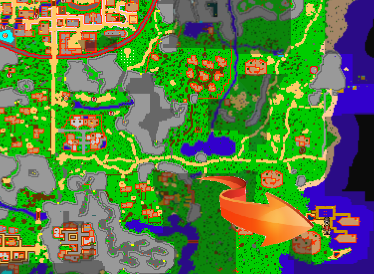 Find the Lodging Town. Lodging Town is the closest town the the leaf's village.