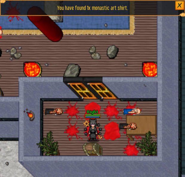 When your character is hungry, your health drops. There are several ways to get food. You can get them from monsters in the form of loot, buy them in shops or stands with vegetables or fruits. Sometimes you have to prepare food. To do this, you need to put raw food on the stove (move the raw food while holding the left mouse button). You can eat prepared food - using the right mouse button. This is how you use objects, in this situation you use food to get calories.
