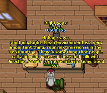 Talk with Hokage and then travel to Tea Country. Go to Jirochou Wasabi and talk to him.