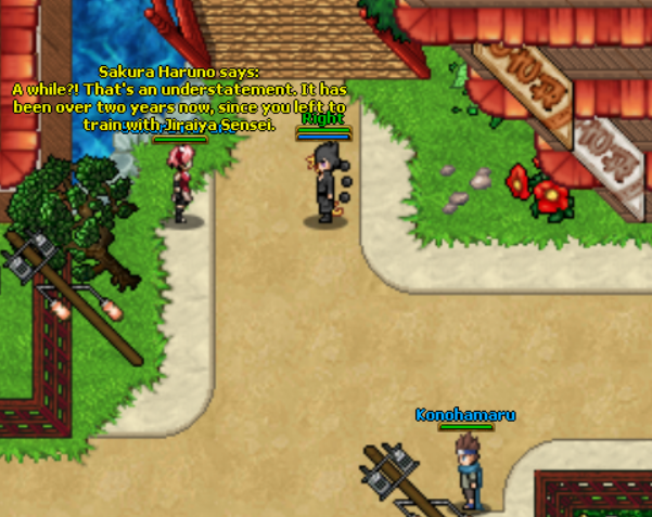 Meet up with Sakura Haruno and Konohomaru in Konoha.